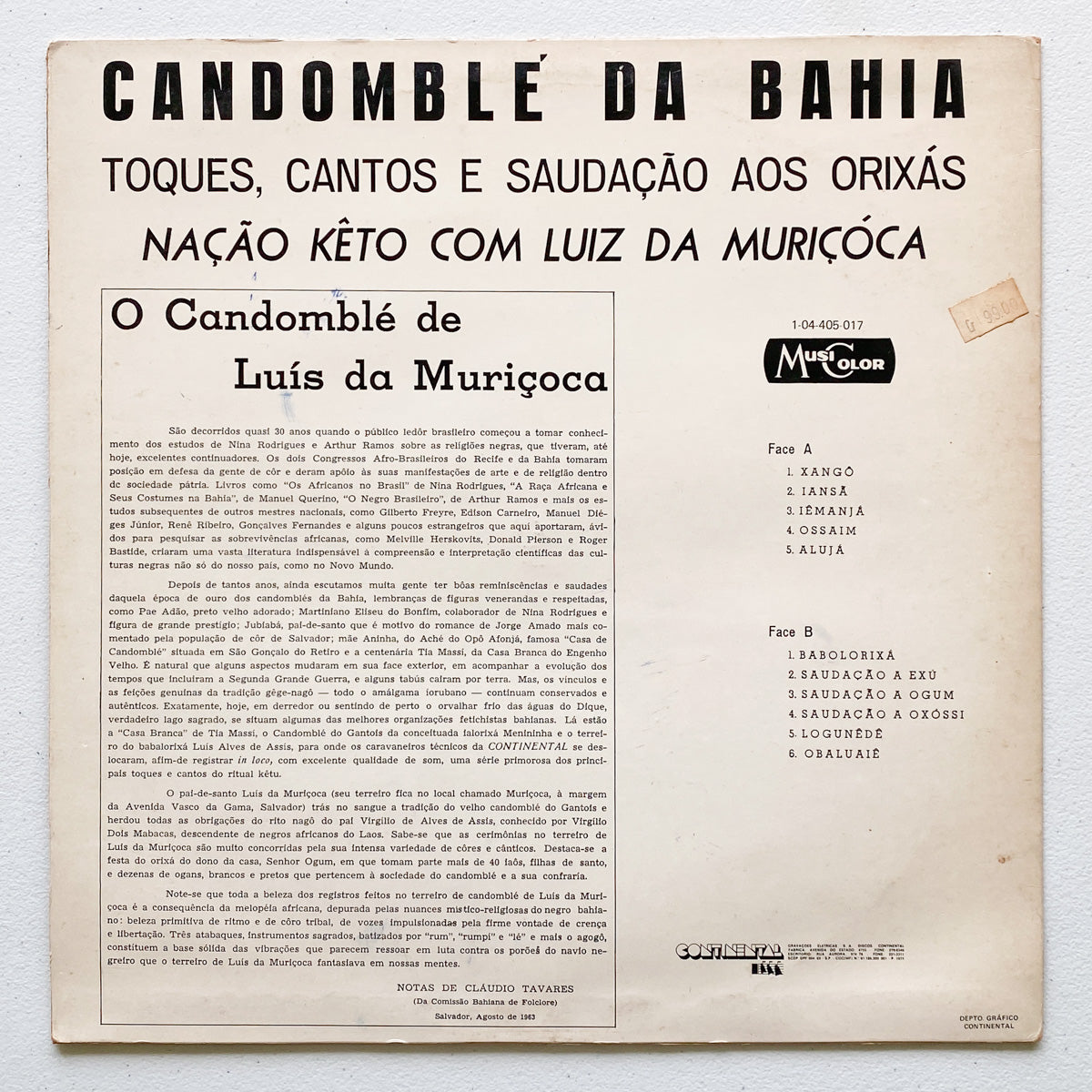 Discover the vibrant essence of Afro-Brazilian culture with the vinyl record "Candomblé Da Bahia" by the renowned artist Luiz Da Muriçóca. This LP, released under the Continental label, captures the rich tradition of Bahian candomblé in its captivating melodies and rhythms. Produced in Brazil, the album is an authentic celebration of the country's musical heritage, perfect for folk music enthusiasts and vinyl collectors. Let yourself be carried away by the magic of the drums and sacred chants that transport the soul directly to the heart of Bahia. Ideal for those looking to enrich their collection with a piece that revives and preserves Brazil's cultural roots.