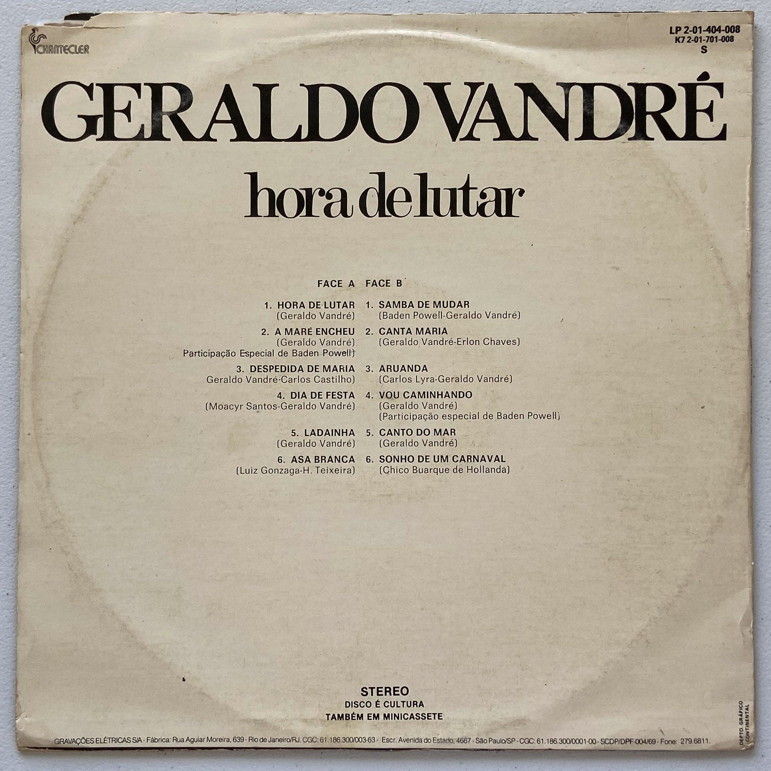 The vinyl record "Hora De Lutar" by the renowned Brazilian artist Geraldo Vandré is an essential piece for music lovers and LP collectors. Released under the Phonodisc label, this album captures the essence of Vandré's talent, known for his impactful lyrics and striking melodies. Produced in Brazil, "Hora De Lutar" reflects the cultural and political context of its time, featuring songs that inspire reflection and resistance. This LP is a testament to Vandré's unique ability to combine music and message, making it a valuable addition to any vinyl collection.