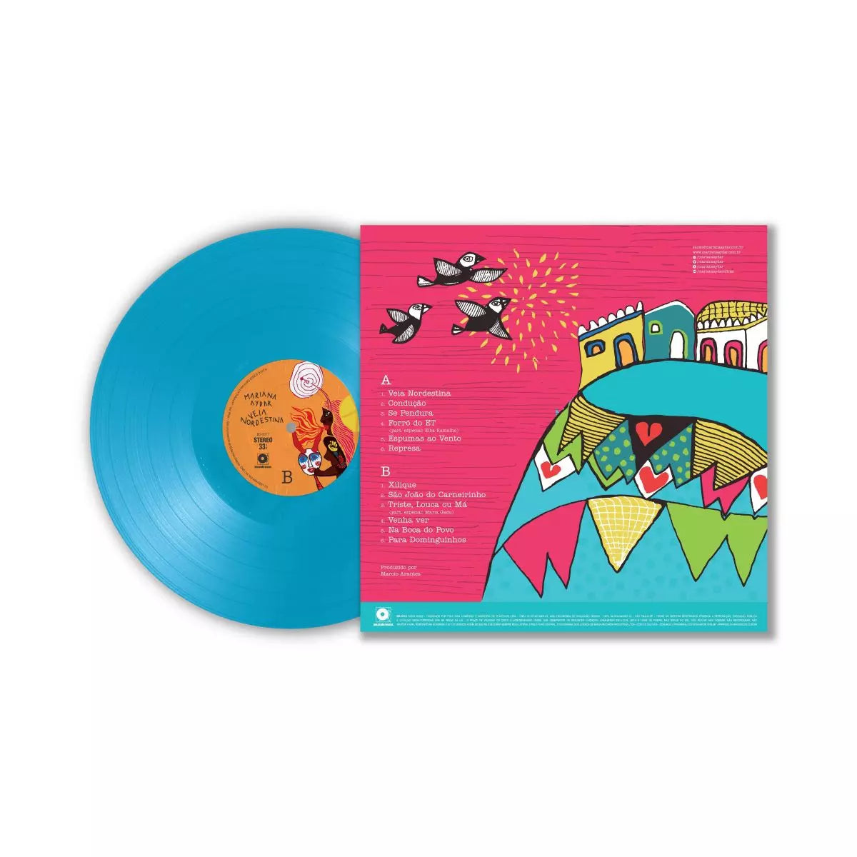 "Veia Nordestina" es el lanzamiento más reciente en vinilo de la cantante y compositora brasileña Mariana Aydar. Este álbum es un homenaje a la rica cultura y música del Noreste de Brasil, presentando una fusión de ritmos como xote, pagodão, arrocha, frevo, galope, kuduro y rastapé. Con 12 pistas que mezclan sonidos tradicionales y contemporáneos, este disco de vinilo muestra la fuerza y libertad de las elecciones de las mujeres mientras celebra la diversidad de la música brasileña. Desde baladas emocionantes hasta canciones de baile enérgicas, "Veia Nordestina" es un disco indispensable para cualquier amante de la música brasileña.