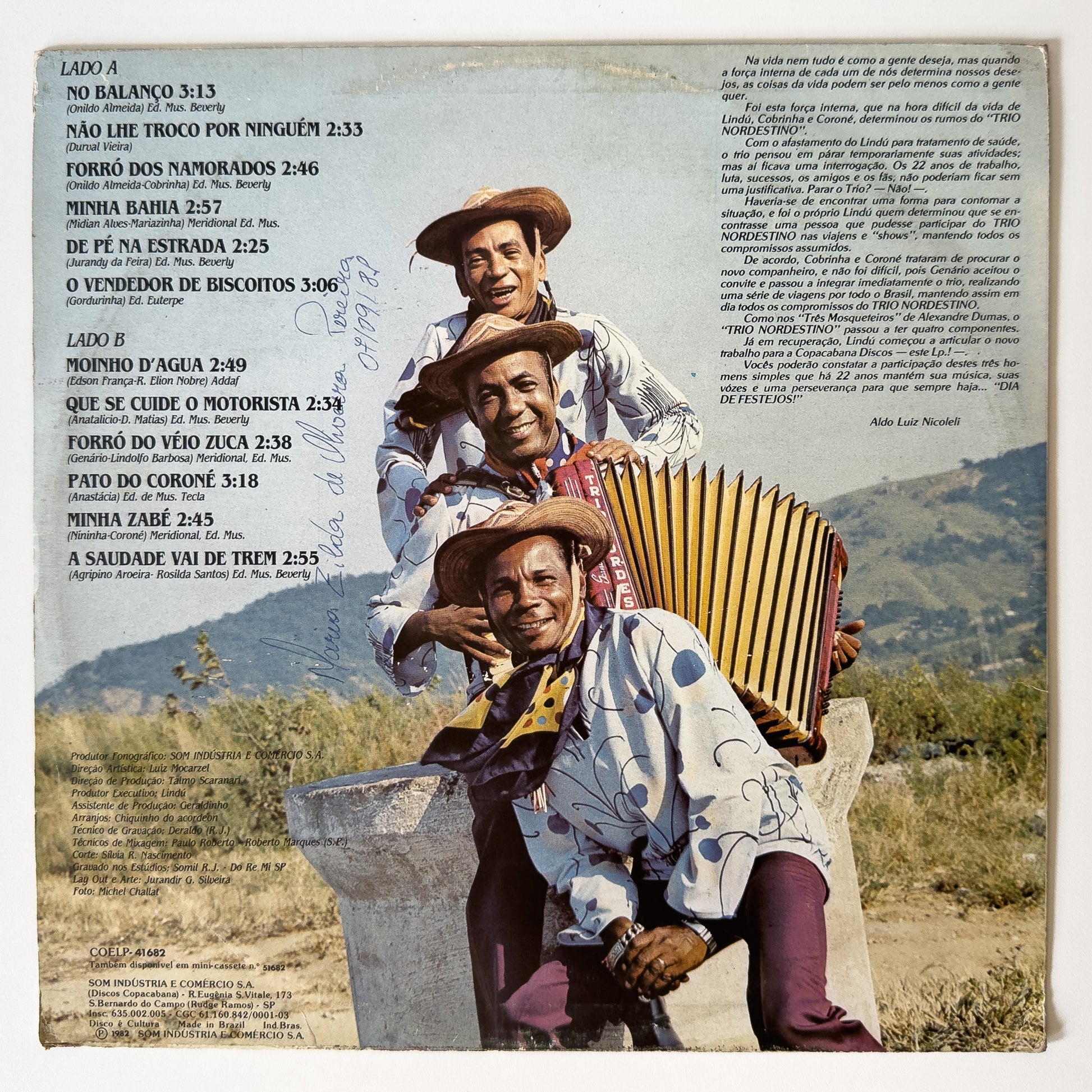 Discover the vibrant essence of Northeastern music with the vinyl record "Dia De Festejo" by the iconic Trio Nordestino. Released under the renowned Copacabana label, this LP captures the joy and tradition of typical Brazilian festivities, bringing to your collection an authentic and engaging experience. Perfect for those passionate about regional music, this album is an invitation to celebrate and dance to the unmatched talent of Trio Nordestino. Don't miss the chance to have this masterpiece of Brazilian music in your vinyl collection.