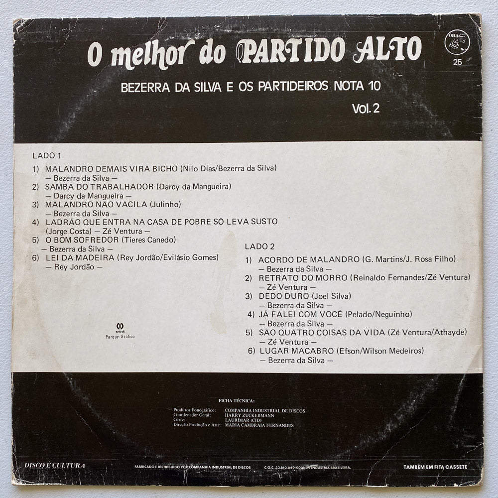 - Bezerra Da Silva - Bezerra Da Silva E Os Partideiros Nota 10: O Melhor Do Partido Alto Vol. 2 (LP)