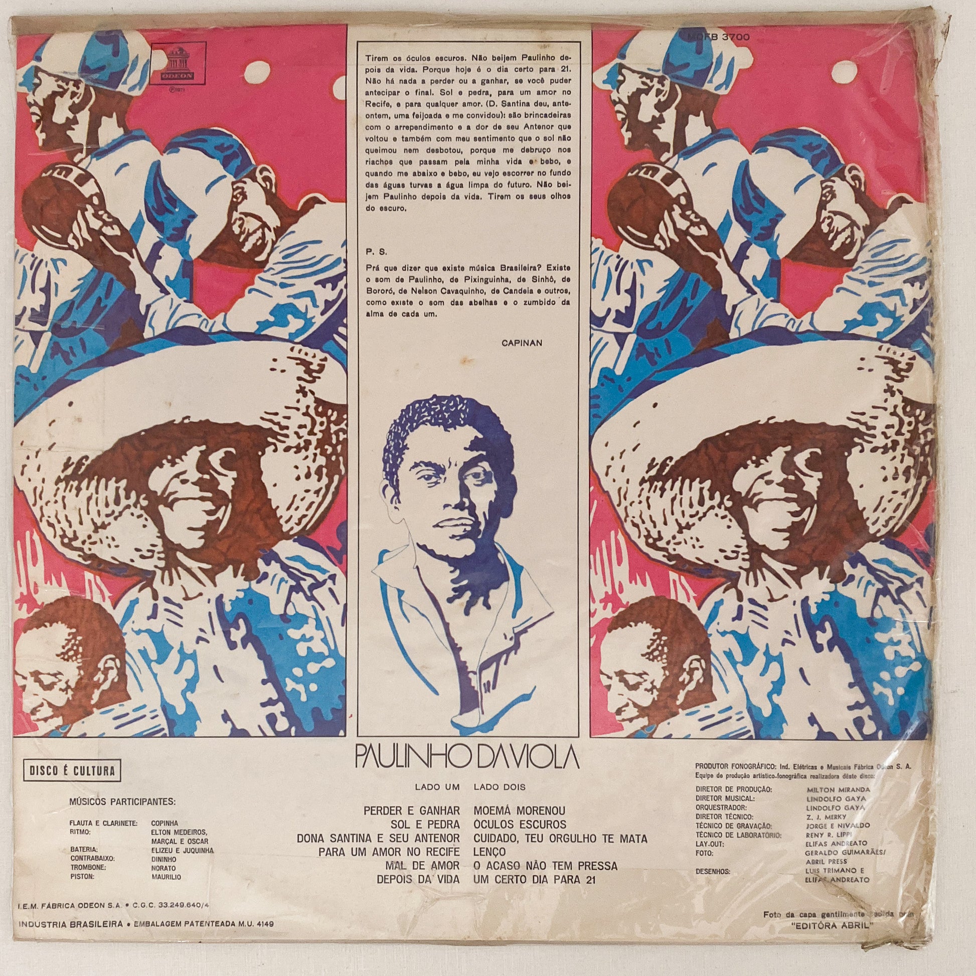Discover the essence of samba with the LP "Paulinho Da Viola" by the renowned Brazilian artist Paulinho Da Viola. This vinyl record is a treasure of Brazilian music, released by the traditional label Odeon, and captures the sophistication and authenticity of samba, hallmark characteristics of this icon. Produced in Brazil, the album features a selection of tracks that reflect Paulinho Da Viola's mastery and sensitivity, making it an indispensable piece for collectors and music lovers. Add this classic to your collection and enjoy a unique listening experience with the unmatched quality of vinyl.